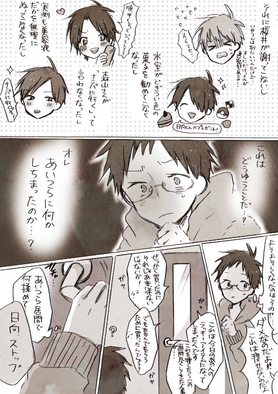 桜「ボ、ボク、日向さんにすぐ謝るのやめます…!」森「オレ達にもそうしてくれていいんだが」桜「そ、それは、あのその…一度に全員は難しいですスイマセン…」氷「大丈夫だよ、まずは日向君の為に頑張ろう」桜「は、はい!ボク日向さんには絶対謝りません!」中「なんだかずれてないか…?」